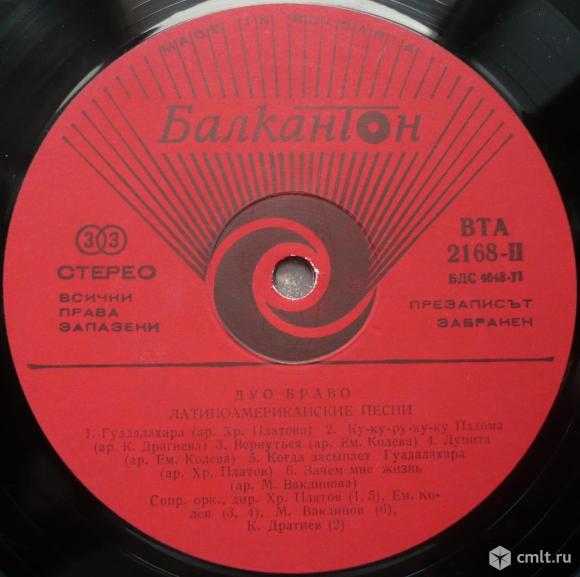 Грампластинка (винил). Гигант [12" LP]. Duo Bravo. Latin American Songs. Balkanton, 1978. Болгария.