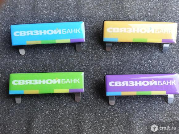 Продам бейджи нагрудные,горизонтальные связнойбанк. крепление двойное (зажим+булавка). бейджи 4х цветов. всего около 150 штук. 75руб. за 1 шт. оптовику-скидка.