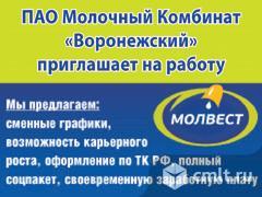ПАО Молочный Комбинат Воронежский. Молвест. Своевременная заработная плата. Полный соцпакет. Сменный график работы. Возможность карьерного роста. Оформление согласно ТК РФ.
