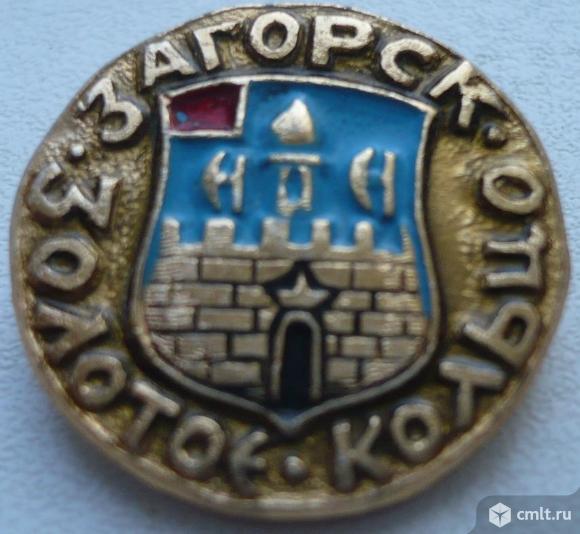 Значок "Золотое кольцо - Загорск", герб, СССР, металл, эмаль.