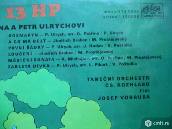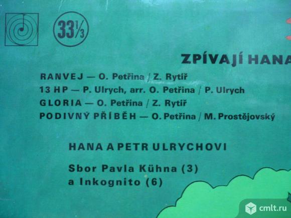 Zpivaji Hana a Petr Ulrychovy. Ranvej / 13 HP / Gloria / Podivny Pribeh // Rozmaryn / A Co Ma Bejt / Prvni Radky / Louceni / Mesicni Sonata / Zakleta Divka. Sbor Pavla Kuhna (3) a Inkognito (6). Tanecni Orchestr Cs. Rozhlasu ridi Josef Vobruba. Recorded in 1970. (P) 1971 Supraphon. Gramofonovy Klub. mono 0 13 0888. Czechoslovakia. Club Edition. Жанры: Rock, Funk / Soul. Стили: Folk Rock, Pop Rock, Prog Rock, Funk / Soul. Пластинка прослушана: очень хорошо [VG+]. Ламинированная обложка: отлично [E].
