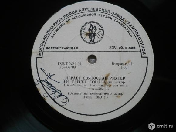 И. Гайдн. Соната до минор: 1 ч.-Moderato. 2 ч.-Andante con moto. 3 ч.-Allegro // Л. Бетховен. 23-я соната фа минор, соч. 57 "Appassionata": 1 ч.-Allegro assai. 2 ч.-Andante con moto. 3 ч.-Allegro ma non troppo. Запись из концертного зала. Июнь 1960 г. Записано во Всесоюзной студии грамзаписи. Мособлсовнархоз РСФСР, Апрелевский завод грампластинок, 1961. Д-06709-10. ГОСТ 5289-61. СССР. Моно. Пластинка прослушана: удовлетворительно [F], имеется 1 заикание на Стороне 1. Без обложки, в целлофановом пакете.