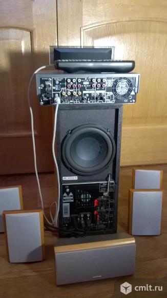 Озвучит просторное помещение без искажений. DVD проигрыватель глючит,зато есть 3 цифровых входа(2 оптика и 1 коаксиал) и 4 аналоговых входа(RCA),так что подключить можно все что угодно,аппарат все разложит в нужную Вам конфигурацию(5.1,2.1,стерео,сурраунд,долби дижитал,про-лоджик,очень много настроек-power bass,midhight,бас,высокие частоты,уровни каналов,режимы имитации киностудий и концертных залов и т.д.) огромный сабвуфер-450x450x200мм,14кг,160мм динамик работает на фазоинвертор,все усилители аналоговые. Сателлиты каждый весом около килограмма Вся информация выводится на стильное выносное табло. Большой многофункциональный обучаемый пульт с подсветкой кнопок Мощность сабвуфера-65Вт,сателлитов-5x40Вт. оригинальные акустические кабели избыточной длинны Проверка работоспособности,небольшой торг. 22.11.2017 08:06