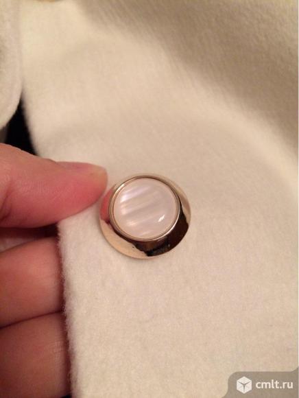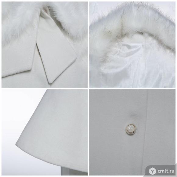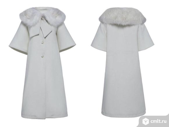 Не зимнее,в теплую погоду и весной - на выход!Мех только для красоты.Качество меха отличное и он отстегивается.Воротник закругленный.Цвет молочный,три пуговицы.Ткань очень приятная.