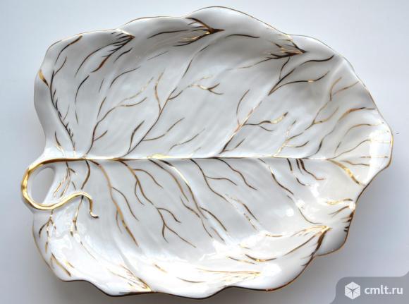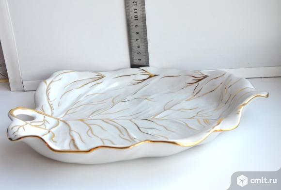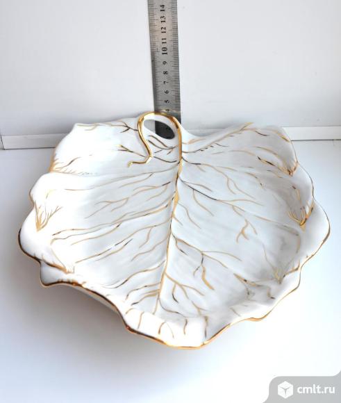 №1. Дулево. Фарфоровая ваза для фруктов Лист (можно использовать, как блюдо для гарнира, салата и т.д). Длина 30 см. ширина 25 см, высота 4,5- 5 см. Новое - 3200 руб/шт.