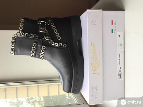Ботинки новые женские кожаные черные осенние весенние демисезонные Lestrosa Италия оригинал внутри кожа размер 39 подошва прорезинена на платформе слегка завышена декор принт украшены ремешком и металлическими кольцами мыс нос полузакруглен обувь бренд новая коллекция весна осннь Оплата на карту сбербанка или лично при встрече наличными есть так же самовывоз метро Жулебино Много всего продаю заходите на мои страницы