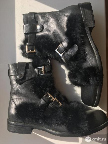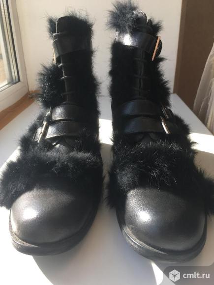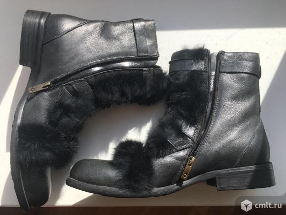 Ботинки сапоги новые кожаные черные зимние с мехом размер 43 подошва проти скольжения противогололедная внутри овчина сверху мех кролик на шнурках и замках обувь бренд новая коллекция зима Оплата на карту сбербанка или наличными при встрече Много всего продаю за ходите на мои страницы