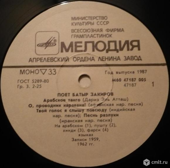 Грампластинка (винил). Гигант [12" LP]. Поет Батыр Закиров (1). Запись 1959, 1962 гг. Мелодия, 1986.
