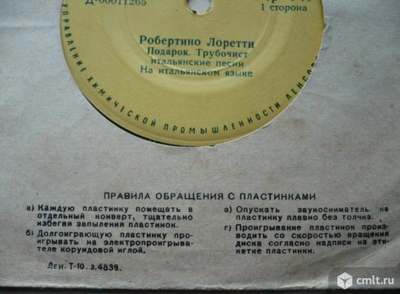 Robertino Loretti (Robertino Loreti). Робертино Лоретти. Per un bacio piccino [Подарок, правильное название "Поцелуй"] / Spazzacamino [Трубочист] // Rondine al nido [Ласточка] / La ninna nanna [Колыбельная]. Итальянские песни. На итальянском языке. Записано Всесоюзной студией грамзаписи. 1962. Управление химической промышленности Ленсовнархоза. Аккорд (желтые лейблы). Д-00011265-6. ГОСТ 5289-56. СССР. Моно. Жанр: Pop. Стиль: Vocal. Пластинка прослушана: очень хорошо [VG]. Общая бумажная обложка "Аккорд": отлично [E].
