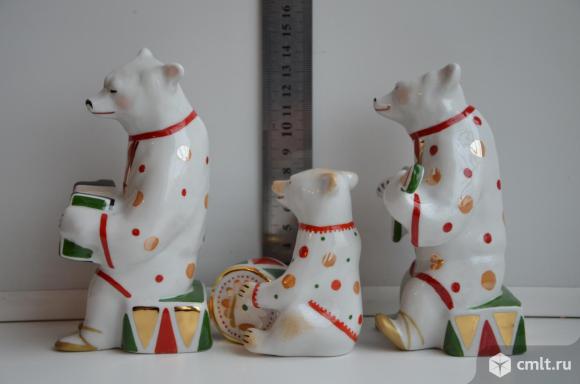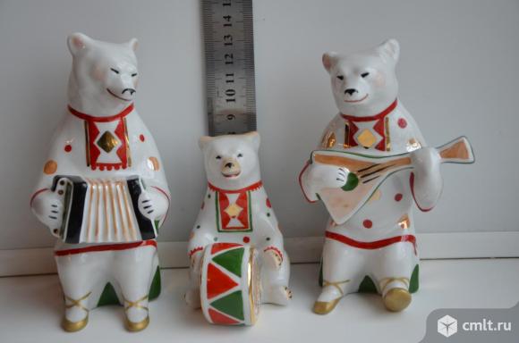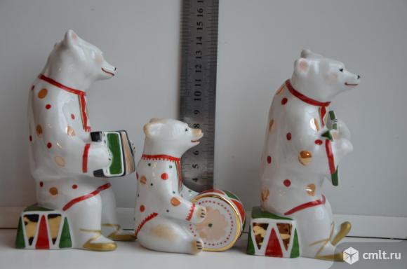 Дулево. Фарфоровая статуэтка Мишка с балалайкой ( Высота 13,5см ) и Мишка с гармошкой ( Высота 14,5 см ), Мишка с барабаном (высота 9 см) Автор – О.Богданова. Отличное состояние!