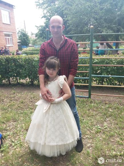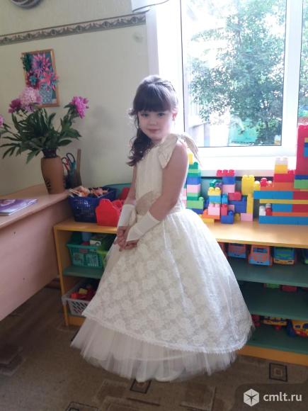 Шикарное платье, цвет шампанского, регулируемый корсет, перчатки, двойное кольцо-подъюбник. Кружево на платье делает его очень богатым и королевским. Одевали один раз на выпускной в детском саду 29.05.2018
