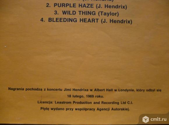 Jimi Hendrix. Experience. Little Ivey / Voodoo Chile / Room Full Of Mirrors // Fire / Purple Haze / Wild Thing / Bleeding Heart. The recordings come from the concert of Jimi Hendrix at the Albert Hall in London, which took place on February 18, 1969. (P) 1989 Wifon. (P) Wifon 1990. Stereo LP 160. Poland. Жанры: Rock, Blues. Стили: Psychedelic Rock, Blues Rock, Electric Blues. Пластинка прослушана: идеально [M-]. Обложка: идеально [M-]. Вкладка: идеально [M-].