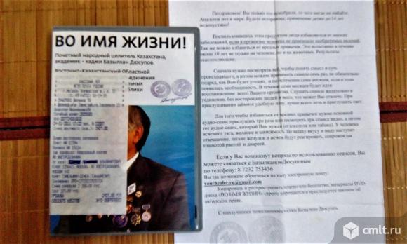 DVD диск "Во имя жизни!" почетного народного целителя Казахстана- Базылхана Дюсупова.Настоящий Оригинал !!!Лицензионный диск!!!--чек,письмо,печати,- все есть и соответствует! На Оф сайте цена-4900.//////// 2200 руб.Состояние: диск,бумаги,коробка-- Отл!