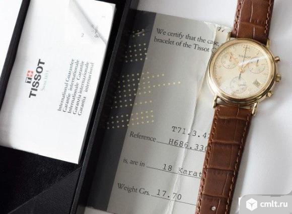 Продам мужские золотые кварцевые швейцарские часы Tissot Т71.3.422.25. Механизм ЕТА, кварцевый. Год выпуска 1996. Проба на крышке. Покупались в США, в фирменном магазине Tissot. Часы оригинальные, не подделка (любые проверки за ваш счет). Не ремонтировались. Носились очень мало, только на мероприятия. Корпус - золото 750 пробы (18К), вес чистого золота 17,7 грамм, диаметр часов 40 мм, сапфировое стекло, в комплекте документы,коробка, оригинальный кожаный ремешок. Состояние часов очень хорошее. Торг небольшой. Возможен обмен на автомобиль, также изделия из золота, платины с бриллиантами, с доплатами в обе стороны. Аналогичные часы стоят от 250000р, поэтому без глупых вопросов. Писать и звонить только реально заинтересованным в покупке, на пустые разговоры времени нет.