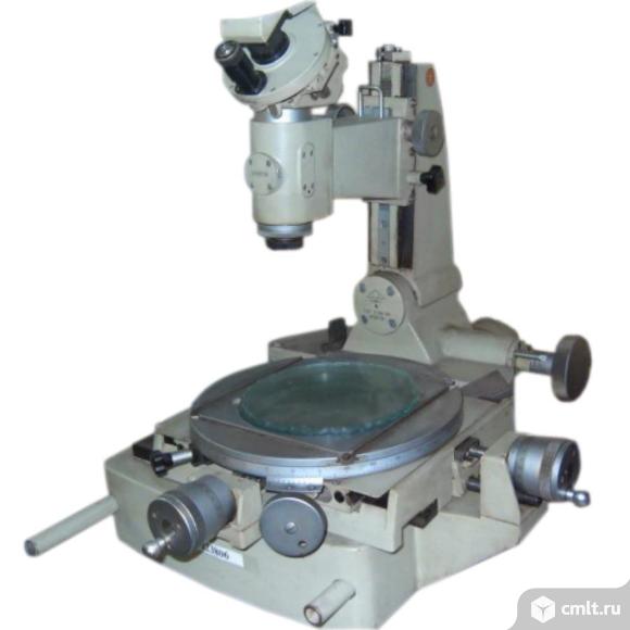 .в проходящем и отраженном свете наружных линейных размеров и диаметров валов до 150 мм в продольном и до 50 мм в поперечном направлениях; .углов изделий до 360° по угломерной головке и столу; резцов, фрез, кулачков и другого инструмента, а также шаблонов любой формы и конфигурации, габариты которых позволяют установить их на измерительном столе микроскопа. Измерение можно проводить в прямоугольных и полярных координатах; .резьбы метчиков по диаметру, шагу и половине угла профиля; .резьбовых калибров по шагу (сравнительным методом), половине угла профиля, прямолинейности профиля и внутреннему диаметру (пользуясь методикой ГОСТ 8.128-74 и ГОСТ 12692-67); .конусных калибров, цилиндрических и конусных втулок, радиусных профилей; .расстояний между центрами отверстий; Технические характеристики Наименование параметров и размеров Диапазон измерения длин, мм: в продольном направлении 0-150 в поперечном направлении 0-50 Видимое увеличение окуляра визирного микроскопа, крат 10 Видимое увеличение отсчетного устройства окулярной головки, крат 45 Диапазон измерения плоских углов окулярной угломерной головкой, …°0-360 Диапазон показаний шкалы дуг окружностей, мм 0.1-60 Диапазон измерений радиусов дуг окружностей, мм: с объективом 1х 5.5-30 с объективом 3х 0.1-5.0 Максимальный угол наклона колонки микроскопа относительно вертикальной плоскости 12°30? Максимальное расстояние между центрами, мм бабки с горизонтальным положением линии центров при измерении изделий диаметром, мм: до 39мм 315 до 85мм 235 Максимальное расстояние между центрами, мм центровой бабки с высокими центрами при измерении изделий диаметром, мм до 160мм 180 до 180мм 160 Максимальный диаметр изделия, устанавливаемого в центрах, мм: бабки с горизонтальным положением линии центров 85 центровой бабки с высокими центрами 180 Максимальный диаметр изделия, устанавливаемого в призматических опорах, мм 130 Максимальное расстояние между объективом и предметным стеклом координатного стола, мм 200 Расстояние от колонки до оси тубуса микроскопа (вылет), мм 186±2 Угол поворота лимба координатного стола, …°, не менее 360 Цена деления шкалы окулярной угломерной головки, …?1 шкалы наклона колонки микроскопа, …?30 нониуса шкалы поворота лимба координатного стола, ?3 Дискретность цифрового отсчета при линейных измерениях, мм 0,0002 Максимальная масса измеряемого изделия, кг устанавливаемого на координатном столе 25 устанавливаемого в центрах бабки 5 Номинальная потребляемая мощность, В · А 120 Напряжение питающей сети, В 220+22 — 33 Частота тока, Гц 50±1 Габаритные размеры, кг, не более: микроскопа с окулярной угломерной головкой 450х570х590 80 транспортной тары ящика с основным комплектом микроскопа 1500х1100х1000 ящика с дополнительным комплектом микроскопа 954х880х420 Масса, кг, не более 100 14.08.2025 21:29