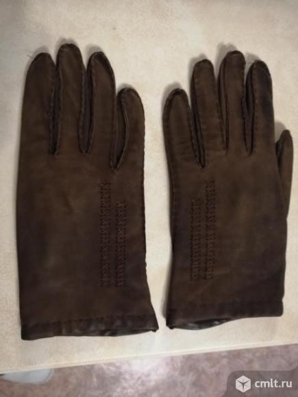 Перчатки из натуральной кожи коричневые утеплённые. Размер 6-7