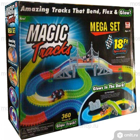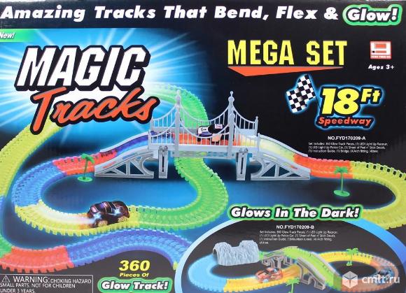 Легендарный гибкий трек magic track 360 деталей!!! одна из самых крутых комплектаций конструктора. 360 деталей+набор знаков+мост. и две машинки!!! светящийся трек! для создания головокружительных трасс.