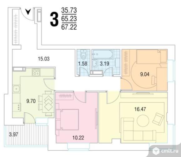 3-комнатная квартира 67 кв.м