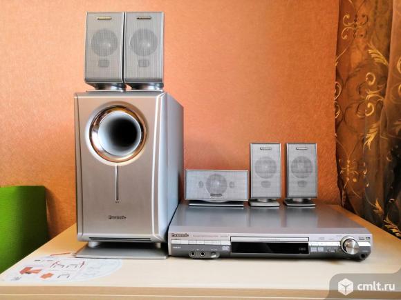Домашний кинотеатр Panasonic HA-SC520. В комплекте DVD плеер, пять колонок, сабвуфер пульт, провода и инструкция. В хорошем состоянии. Торг.