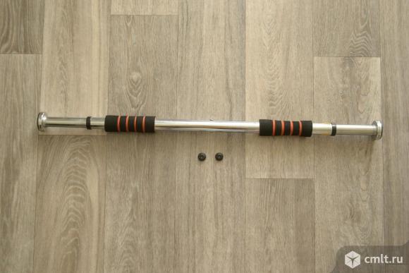 Раздвижной турник с мягкими неопреновыми накладками для тренировки мышц плечевого пояса, пресса и спины. На концах турника расположены усиленные кронштейны для крепления к дверному проему.