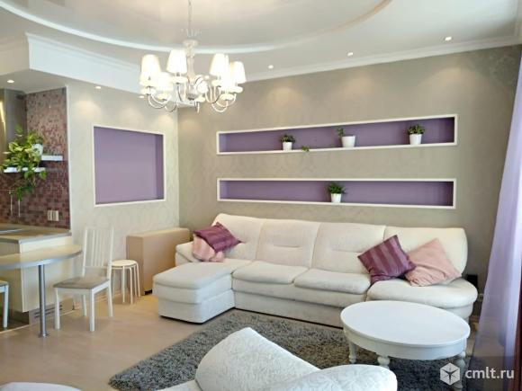 Квартира полностью укомплектована сдается от собственника. абсолютно вся техника и мебель. При входе мини-гардеробная, кухонный гарнитур. Королевская круглая кровать с воздушным балдахином. Застеклённая лоджия с диванчиком.