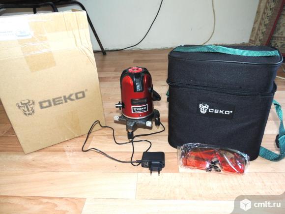 Смотрите видеоролик-инструкцию Продаю абсолютно новые лазерные самовыравнивающийся уровени Deko Pro . 1 горизонтальная и 4 вертикальных линии, 6 точек на пересечении линий. Звуковая индикация наклона уровня. Дальность построения плоскостей 25 метров . Нивелир работает от сети или от 3-х пальчиковых батареек.Возможна установка на штатив, вращается на 360 градусов
