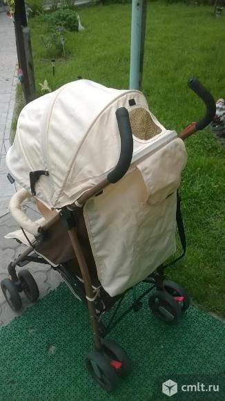 Коляска почти новая, ребенок катался очень мало..Лёгкая прогулочная коляска-трость. Спинка имеет 5 положений фиксации, включая полностью горизонтальное. Мягкий бампер и ремни безопасности .Глубокий капюшон со смотровым окном (опускается до бампера).На ручках есть специальные накладки. Регулируемая подножка. Резиновая подставка для ног.Фиксация передних и задних колес. Передние колеса поворотные. Колеса резиновые. Перекладина перед ребенком разъемная.Для транспортировки предусмотрен. 27.09.2019 09:45