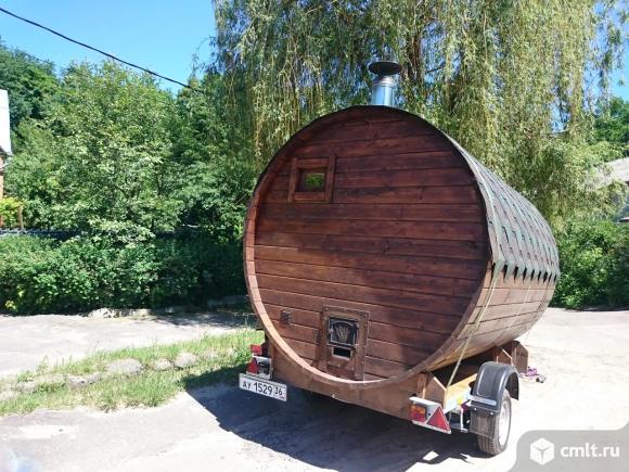 Сдаю баню'-бочку на прицепе в аренду. 2000 в сутки. Бани есть разные, от 4 до 8 человек. Баня дровяная. Вы сами на фаркопе забираете баню, потом возвращаете. Категория В. Есть свет.
