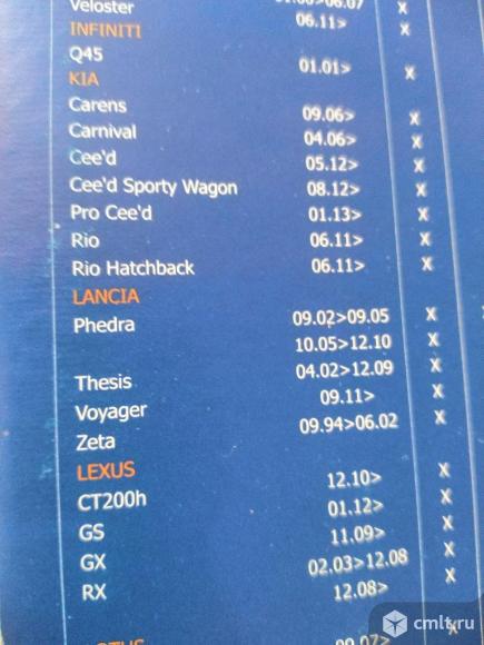 Отправлю в Ваш город всеми видами доставок Применяемость смотри ниже в описании каждой фото.Отдельно в продаже есть несколько адаптеров Новая,без пробега по России и без торга! Приобреталась для Фольксваген Крафтер(не подошла по креплению) Модель Kraft KT830018(можете посмотреть применяемость в интернете) Модель адаптера М2.Размер 26 дюймов=65 см Применяемость этой щетки(более точные года могу прислать): Сhevrolet Grand Voyager 09.07-11.09-12.09 Voyager 08.00 и старше 01.08-11.09.с 12.09 и старше Citroen С1 до 06.05 Citroen С5 03.01-03.03 03.01-11.03 Citroen С5 Break 06.01-11.03 Citroen С8 06.02-07.05 Evasion 06.94-07.02 Jumpy 10.95-01.07 Xsara Picasso 01.00-09.05 Dodge Caravan 01.95-08.03 09.00-08-07 Crand Caravan 09.07-11.09 12.09 Fiat:Scudo 10.95-11.07 Sedici до 05.06 Ulysse 09.94-09.02 с 10.02-10.05 с 11.05-12.10 Honda:Accord/Accord Tourer/Civic Hatchback/Civic Hybrid/ Civic Sedan/cr-v/cr-z/Crosstour/Fr-V/Insight хэтчбек/Jazz Hyundai:Accent Blue/Elantra/Н-1/i-30/ i-30 Cupe/i-40/i-40 CW Kombi/Santa Fe/Solaris/Solaris хэтчбек/Sonata VI/Starex/ Trajet/Veloster Infiniti:Q45 Kia:Carens/Carnival/Ceed/Ceed SW/ProCeed/Rio/Rio хэтчбек Lancia:Рhedra/Тhesis/Voyager/Zeta Lexus:Сt200h/ GS/ GX/RX Lotus:Elise Cabrio/Еuropa/Exige Mazda:5/cx-7/cx-9 Mercedes:А класс(168)/Е-класс(210)/Е-класс(Т-Modell 210)/V-класс(638Ton)/Vaneo(414)/Viano(639 Ton)/Vito(638 Ton)/Vito(639Ton) Mitsubishi:Colt/Colt Cabrio/L-400/Outlander Nissan:Almera Tino/Maxima/Maxima QX/Murano/nv400/ Primera седан/Primera Wagon Smart MCC:Forfour Subaru:Forester/Impreza Sedan/Legacy/Legacy Kombi/Legacy Outback/Tribeca/ XV Suzuki:SX4/SX4 Hatchback/SX4 Sedan Toyota:Auris/Auris touring/Avensis Verso/aygo/Camry/Celica Coupe/Corolla/Corolla Verso/Highlaner/Land Cruiser/Land Cruiser Prado/Prius/RAV4/Sienna/Venza/Venza Есть отдельно у меня в продаже такой же длины 26 дюймов=65 см для Мерседес Спринтер W906/Фольксваген Крафтер=1 шт=нов=700 руб(пришлю фото) Посмотреть можно по предварительному звонку в любое время в районе площади Ленина,ресторана Токио 10.01.2026 07:09