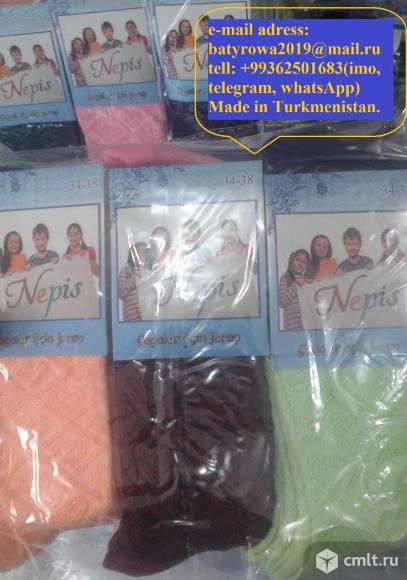 Предлагаем качественные носки оптом на экспорт производства Туркменистане, мужские, женские, подростковое и детские. В ассортименте однотонные и с рисунком, с двойной хлопковой нитью, различной длины . Качественная нить. Цены: разное завысить от размер и сорт