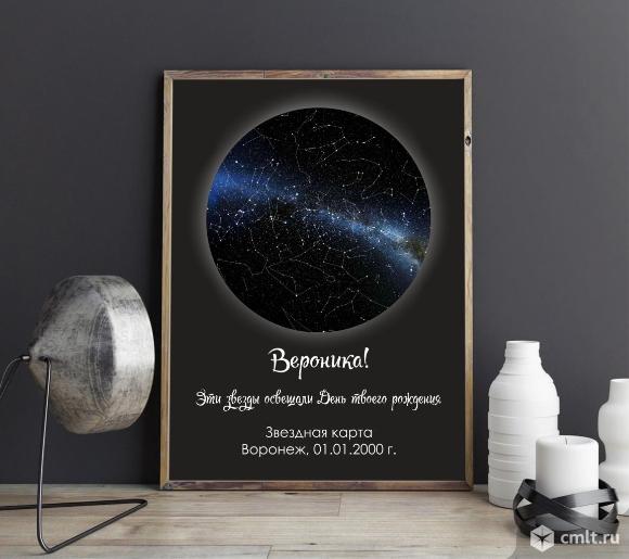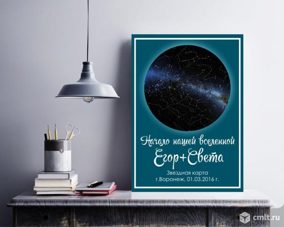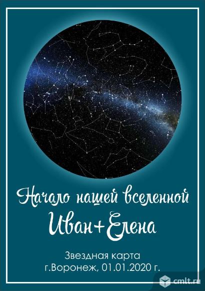 Удиви близкого человека незабываемым подарком! Карта создаётся на основе астрономических данных из каталога NASA, на которых точно изображены все небесные тела. Цена: Карта формата А4 (20х30 см) -1200 рублей Карта формата А3 (30х40 см) - 1500 рублей В электронном варианте, для самостоятельного изготовления - 650 руб! Есть другие форматы, побольше. Звоните! 16.04.2020 13:40