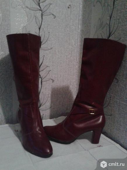 Продам новые женские осенние сапоги бордового цвета на каблуке, размер 25