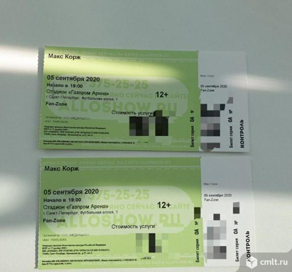 2 бумажных билета в фан-зону на Макса Коржа 5.09 в СПб. Приобретены в кассе Alloshow.