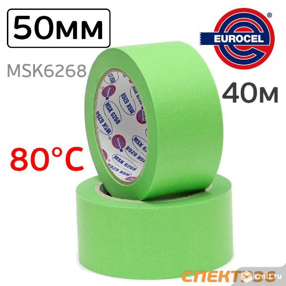 Лента малярная EUROCEL 50мм х 42м зеленой, термостойкость до 80°С