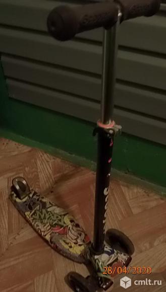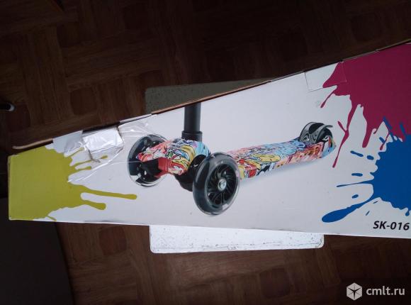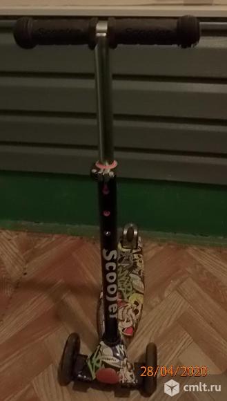 Детский самокат Scooter SK-016, состояние хорошее. Колёса маленькие, светодиодные, при кручении светятся в цвет зелёный-синий-красный(малиновый). Регулировка руля по росту. Подойдёт как для мальчика так и для девочки от 3-х лет. Торг.