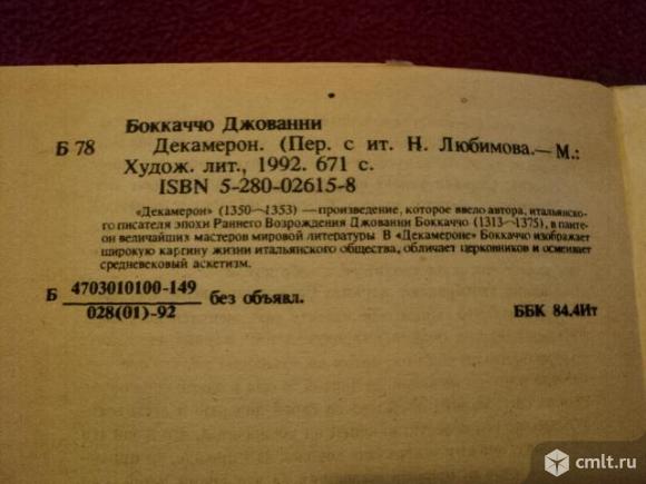 Книга Джованни Боккаччо "Декамерон". Фирма Арт 1992г. 464 с.