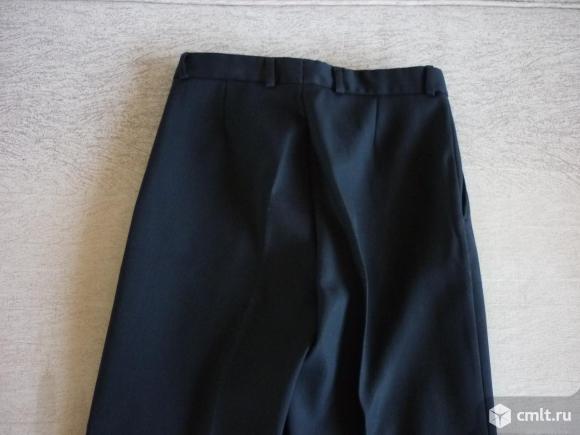 Брюки темно синие в полоску, б/у. Размеры: ширина талии=36см. длина=93см. длина штанина до паха=68см.