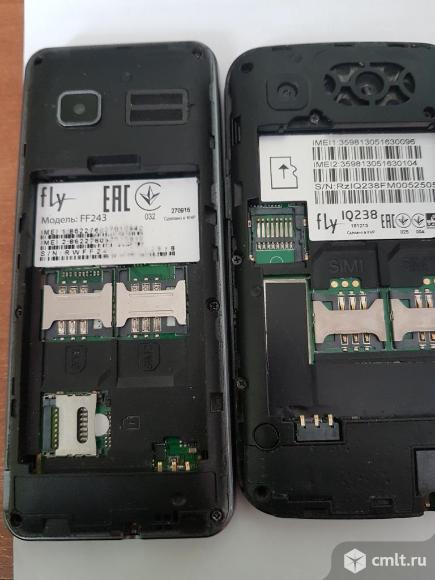 Продам телефоны марки FLY на запчасти или восстановление,модели DS 120-работает но не видит симок,лопнута задняя крышка-продан,iQ238-включается,разбит дисплей и тач-они частично показывают чтобы проверить плату,корпус в нормальном состоянии,FF243-включается,разбит дисплей,корпус в хорошем состоянии,Е141 TV-не включается,дисплей с виду цел,антена и задняя крышка целы-продан,все телефоны по 100р,батарейки к ним по 100 р,забирать в масловке