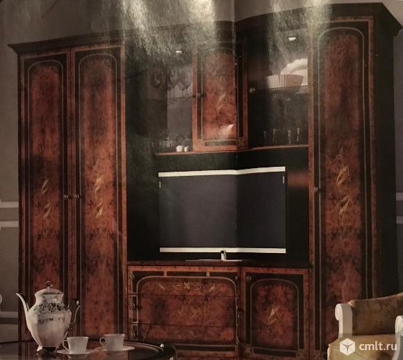 Стенка фирмы "Шатура" Материал: ЛДСП/МДФ. Размер: 2261х3690х660. Цвет: Орех Ноче Ренуар/Саванна Темная. Коллекция для гостиной Авангард выполнена в классическом итальянском стиле с искусной шелкографией и фурнитурой золотистого цвета.