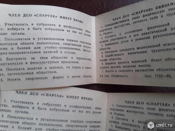 2 шт. Одним лотом. Членские билеты СПАРТАК. Чистые