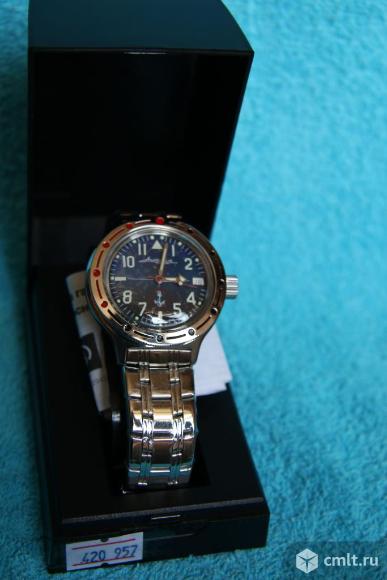 Наручные механические часы с автоподзаводом "Восток-Амфибия" (арт. 420957 "Морская Пехота"), производитель: ЗАО "Часовой завод "ВОСТОК" г. Чистополь (Татарстан), противоударные, водонепроницаемые (глубина погружения до 200м). Корпус часов изготовлен из высококачественной стали. Органическое стекло предназначено для глубоководных погружений и может выдержать сильное механическое давление.
