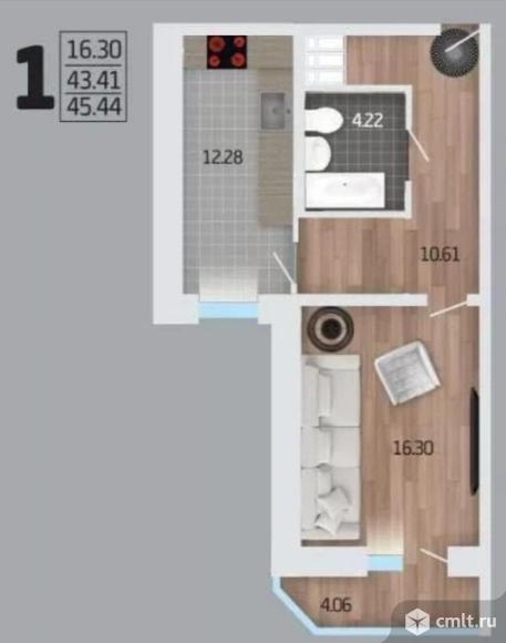 1-комнатная квартира 45 кв.м