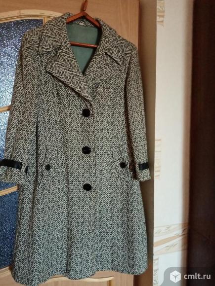 Пальто демисезонное, р. 48, длина по спине 108 см, рукова 58 см, полуобьем по бёдрами 60 см. Состав ткани 75% шерсти, б/у. Состояние хорошее.