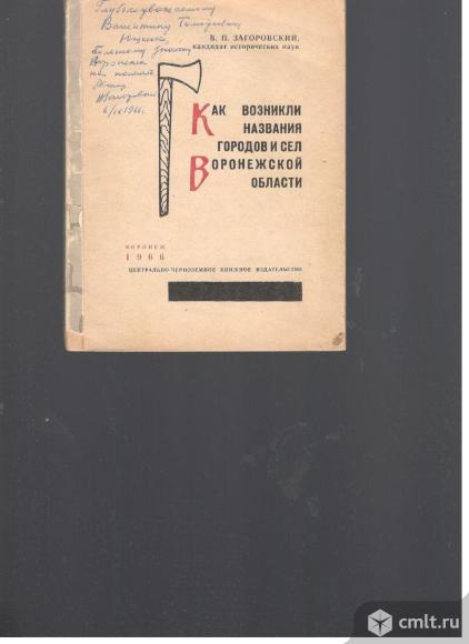 В.П.Загоровский.Как возникли названия городов и сел Воронежской области. 1966 ЦЧКИ.Воронеж