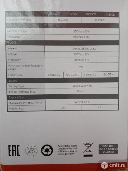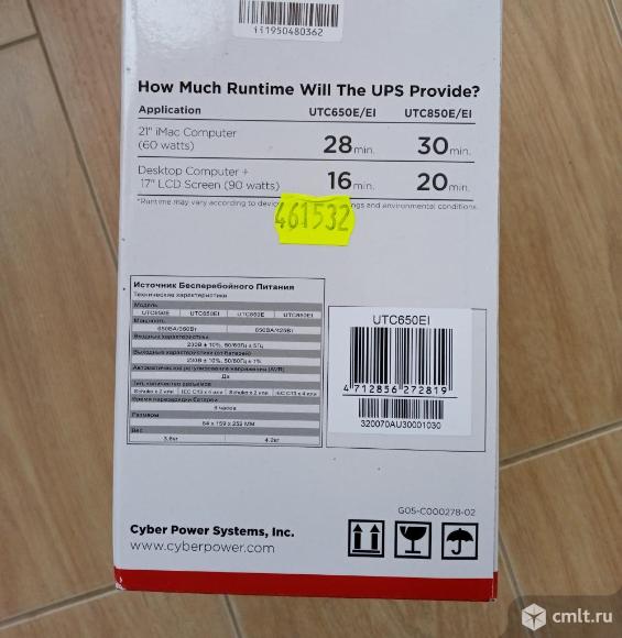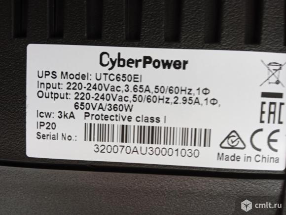 Производитель CyberPower UTC650EI,черный Подарили,пылится Состояние нового Цена указана только за бесперебойник без проводов За отдельную плату могу предложить 2 кабеля:от ИБП к монитору и от ИПБ к системному блоку К объявлению прикреплено видео,взятое с интернета-только для общего понимания модели Отправлю в Ваш город Тип ИБП линейно-интерактивный Выходная мощность(активная)360 Вт Выходная мощность(полная)650 ВА Количество выходных розеток с батарейным питанием 4 Количество разъёмов IEC C13-4 Вх.напряжение с очень большим разбросом:165-290 Вых.напряжение:220 Габариты:(ВхШхГ)159х84х252,мм Легкий 3.82 кг Посмотреть можно по предварительному звонку в районе площади Ленина,ресторана Токио в любое время 29.01.2026 12:37