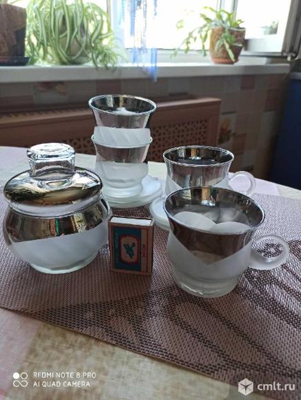 Ручка сахарницы- прозрачная. Сахарница и 4 чашки, в коробке (фото 2). Красная подарочная лента в подарок 10.01.2026 12:40
