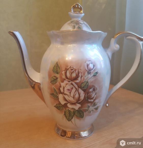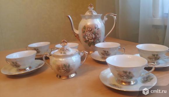 Продаю изящный кофейный сервиз Перламутровые розы, 6 персон, 14 предметов, идеальная сохранность. Клеймо польского фарфорового завода Ходзеж, 1984 г.