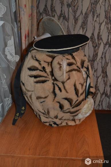 Ростовая кукла Кот (Тигр). В комплекте: голова, комбинезон, перчатки (лапы), сумка для переноски. Костюм можно свободно надеть самостоятельно, только попросить застегнуть молнию на комбинезоне сзади. Костюм лёгкий, удобный, комбинезон без поролона. На голове бескозырка с надписью "Северный флот". Осмотр через шею и дополнительно через рот. Подойдёт как человеку (мужчине или женщине) маленького, так и среднего и выше среднего роста. Можно надеть как на зимнюю, так и на летнюю одежду. Лапы регулируются при надобности по длине подворотами, удобно собирать деньги. Под комбинезон используется своя обувь т.е. нет лишних хлопот с неудобной и объёмной обувью ростовой куклы. На концах рукавов и штанин комбинезона предусмотрены резинки. Ростовая кукла свободно помещается в среднюю сумку, можно легко провести в маршрутке.