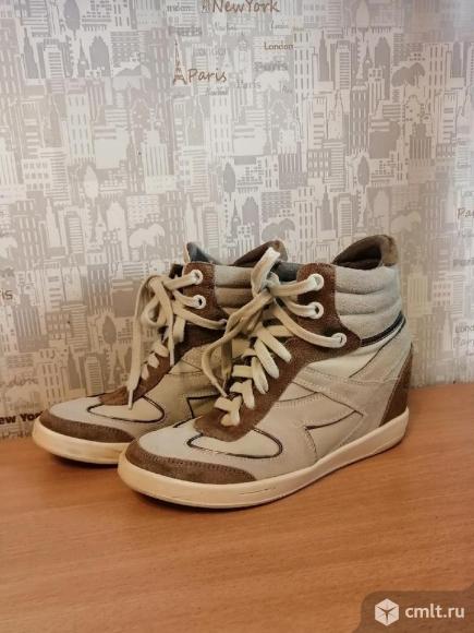 Кроссовки со скрытым каблуком. Б/У. Очень удобные, кожа натуральная. Они на узкую ногу 37 размера, хотя там написано, что р.38. Маломерки. Носили их не долго, нога у дочери быстро выросла. Померить и купить можно либо в Тенистом либо в центре города на ул. Плехановской. Есть торг!