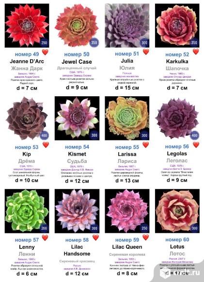 Каменные розы (молодила) 133 сорта